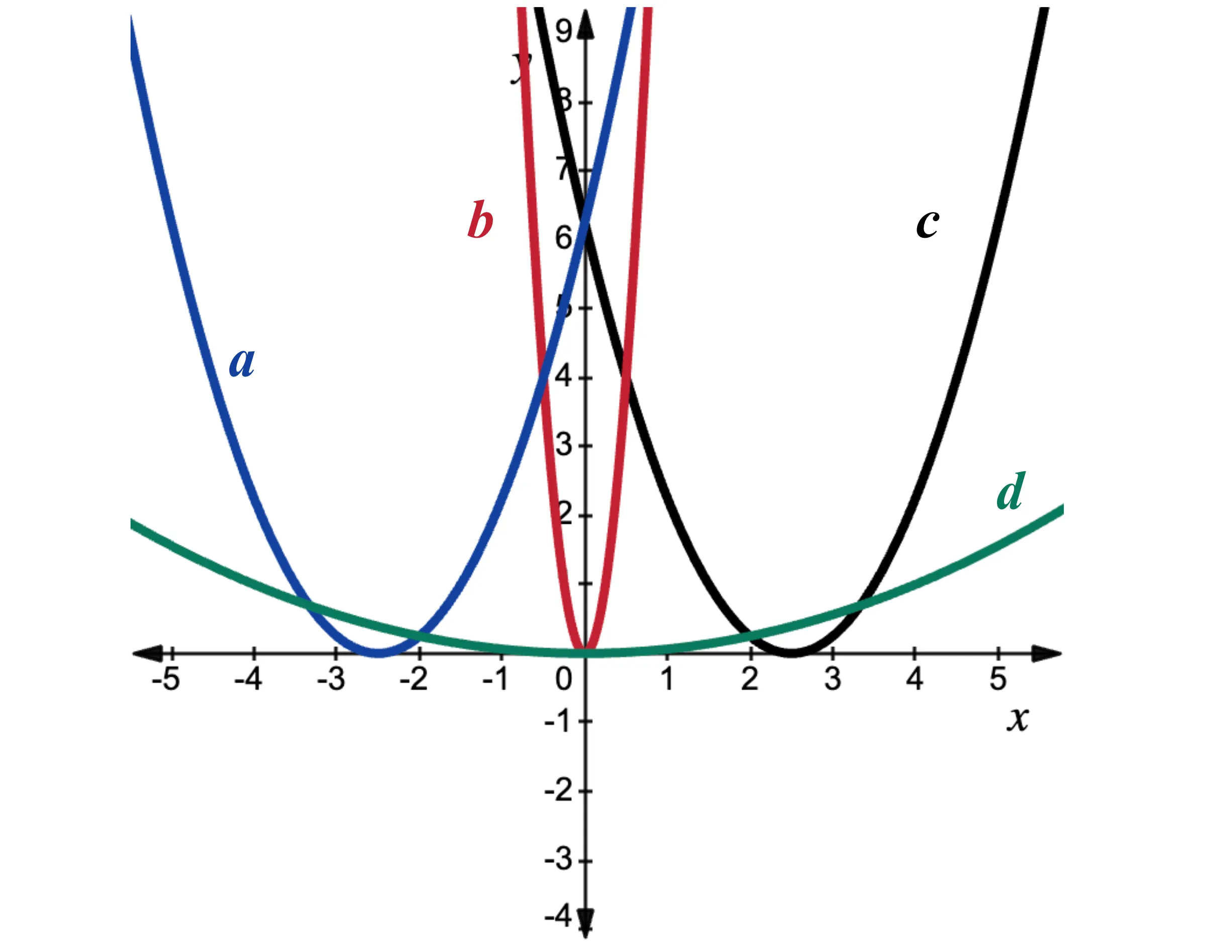 Blue graph (in the middle, opening upward)