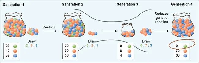 Go to this site to watch an animation of random sampling and genetic drift in action.