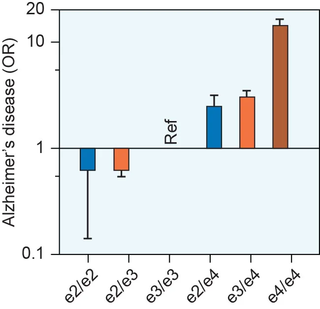 E2 allele increases likelihood of having Alzheimer's. E2/E3 combination has the most risk.