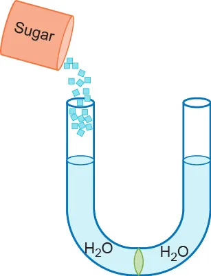 Sugar, a large molecule, is added to left arm of the U-shaped tube. Make a claim about what will happen next.
