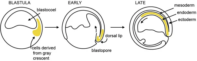 The image shows development of the early embryo after the blastula stage.