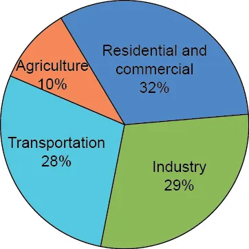 A 20% decrease in greenhouse gas emissions by residential and commercial use would reduce the total emissions by about 8%