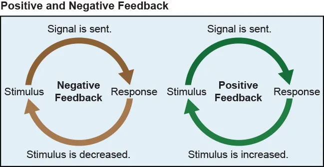 Positive feedback mechanisms maintain a balanced amount of substances, whereas negative feedback restricts their accumulation.