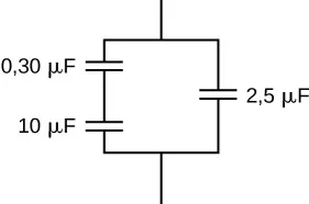Potrzebujesz układu kondensatorów o pojemności , ale masz jedynie kondensatory o pojemności . Co najmniej ilu kondensatorów należy użyć, żeby osiągnąć pożądaną pojemność i jak należy je połączyć?