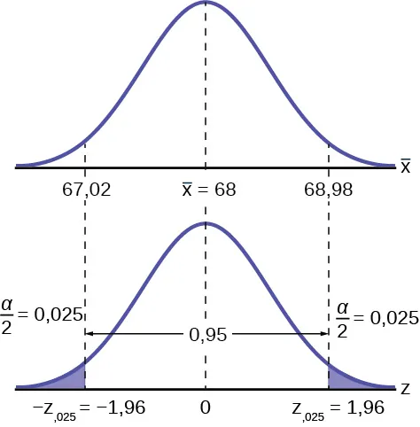 Por ejemplo, cuando CL = 0,95, α = 0,05 y = 0,025; escribimos = .