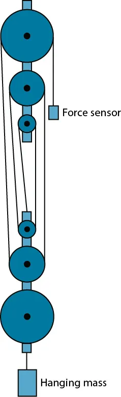 Refer to the pulley system on right in the image. Assume this pulley system is an ideal machine.