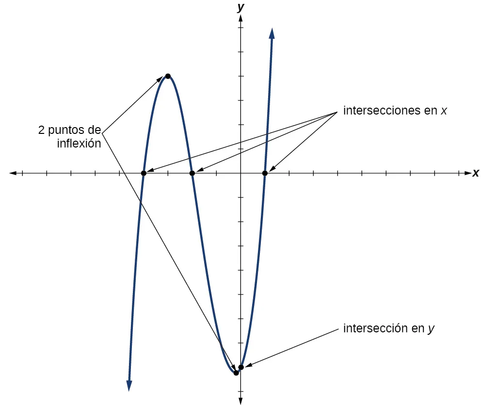 Un polinomio de grado tendrá, a lo sumo, intersecciones en x y puntos de inflexión.