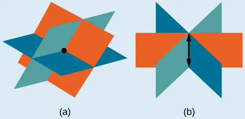 Al igual que con los sistemas de ecuaciones en dos variables, podemos encontrarnos con un sistema de ecuaciones inconsistente en tres variables, lo que significa que no tiene una solución que satisfaga las tres ecuaciones. Las ecuaciones pueden representar tres planos paralelos, dos planos paralelos y un plano de intersección, o tres planos que se cruzan con los otros dos pero no en el mismo lugar. El proceso de eliminación dará como resultado un enunciado falso, como por ejemplo o alguna otra contradicción.
