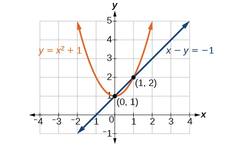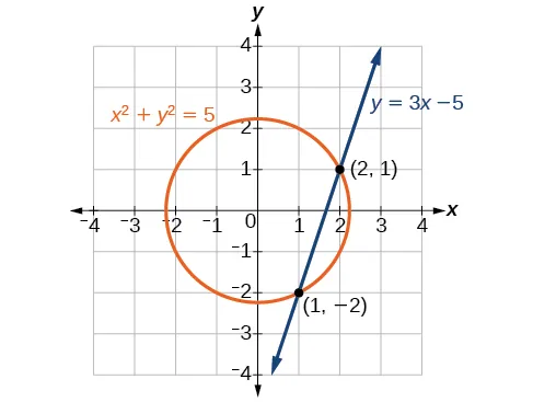 En esta sección, consideraremos la intersección de una parábola y una línea, un círculo y una línea y un círculo y una elipse. Los métodos para resolver sistemas de ecuaciones no lineales son similares a los de las ecuaciones lineales.