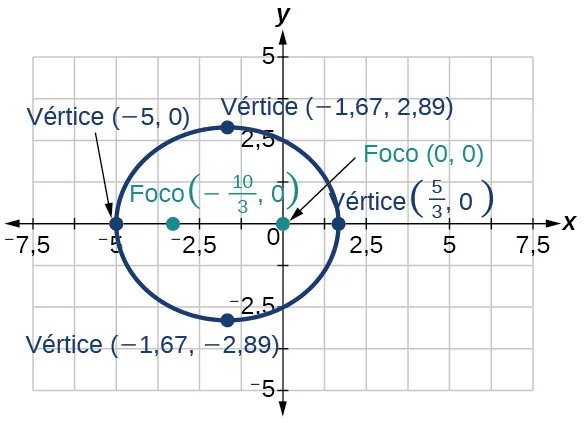 Observe que esta elipse es un círculo. El círculo solo tiene un foco, que coincide con el centro.