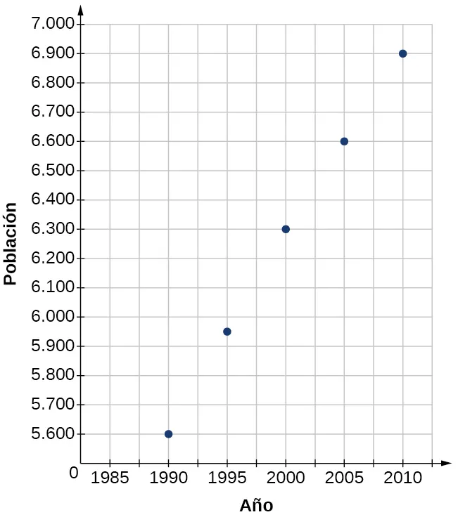 La pendiente es Esto significa que, por cada año entre 1960 y 1989, la población disminuyó en 400 habitantes por año en la ciudad.