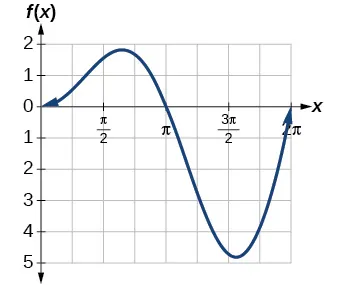 Se añade una función lineal a una función seno periódica. El gráfico no tiene amplitud porque, al aumentar la función lineal sin límite, la función combinada también aumentará sin límites. El gráfico está acotado entre los gráficos de y porque el seno oscila entre -1 y 1.
