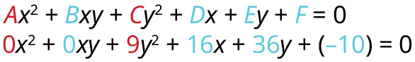 In previous sections of this chapter, we have focused on the standard form equations for nondegenerate conic sections. In this section, we will shift our focus to the general form equation, which can be used for any conic. The general form is set equal to zero, and the terms and coefficients are given in a particular order, as shown below.