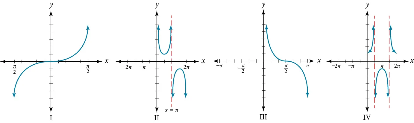 For the following exercises, match each trigonometric function with one of the following graphs.