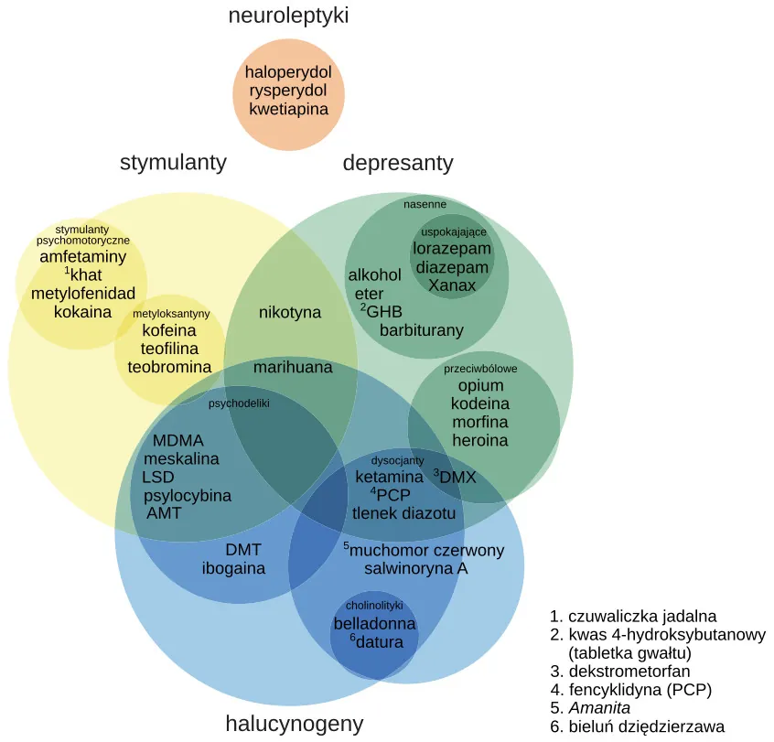 Podczas gdy wszyscy regularnie doświadczamy odmiennych stanów świadomości w postaci snu, niektóre osoby zażywają narkotyki i inne substancje, by wejść w nie celowo. W tym podrozdziale zaprezentujemy informacje dotyczące stosowania różnego rodzaju substancji psychoaktywnych oraz problemów z tym związanych. Na końcu krótko opiszemy działania niektórych z dobrze obecnie znanych i często zażywanych narkotyków.