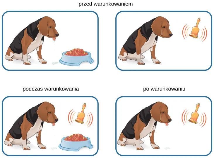 Pawłow, naukowiec rosyjski, przeprowadził szerokie badania na psach, ale to eksperymenty nad warunkowaniem (ang. conditioning) klasycznym rozsławiły go najbardziej (Ilustracja 6.3). Jak to omówiliśmy pokrótce w poprzednim podrozdziale, warunkowanie klasyczne (ang. classical conditioning) jest procesem, w którym uczymy się kojarzyć bodźce z reakcjami i dzięki temu działać w sposób przewidywalny.