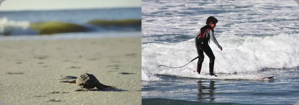Niedaleko tej samej plaży Ben i jego syn, Julian, pływają po oceanie na deskach surfingowych. Zbliża się fala, więc Julian przykuca na desce, a następnie podskakuje i surfuje kilka sekund na fali, traci równowagę i, płynąc obok deski, obserwuje swojego ojca sprawnie ślizgającego się po fali.